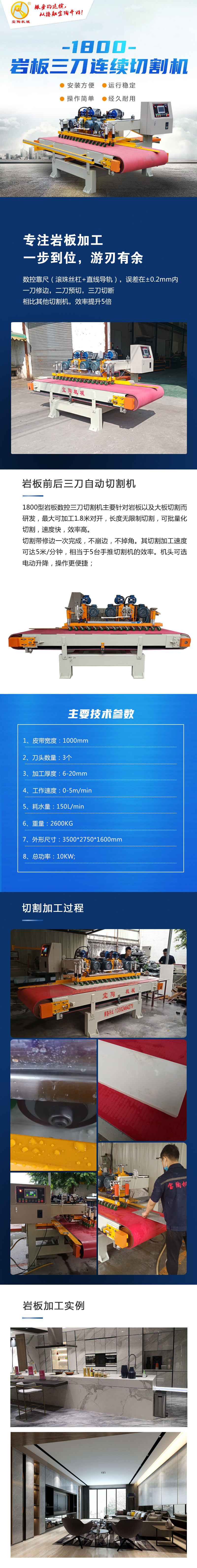 1800型全自動前后3刀數(shù)控大板切割機是一款專門針對陶瓷大板切割的新型機械,具有切割速度快,加工效果好,能連續(xù)切割,穩(wěn)定性好,是整個陶瓷加工行業(yè)唯一能連續(xù)不斷加工的大板自動切割機,有輸送帶流水線式自動批量切割,效率是手推大板切割機的4倍。